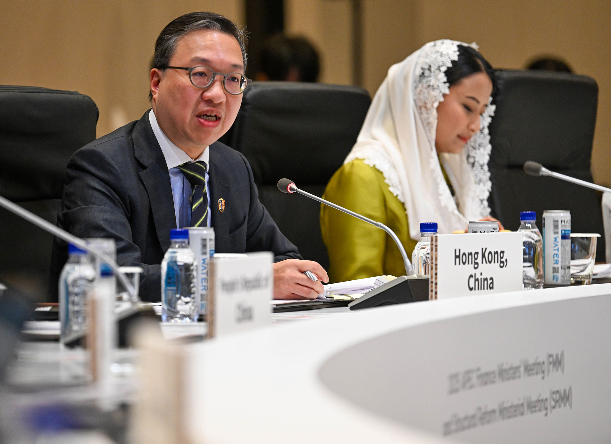 Mr Lam then attended the third and fourth discussion sessions of the ministerial meeting. On the topic of how structural reform can promote prosperity for all, Mr Lam stated that Hong Kong, China has always been committed to sharing the fruits of prosperity with members of the public. The Chief Executive's Policy Address this year, with the theme "Deepening Reforms for Our People and Leveraging Our Strengths for a Brighter Future", perfectly reflects this policy objective. During the discussion session, Mr Lam introduced Hong Kong, China's measures in housing, labour, healthcare, and support for the development of micro, small and medium-sized enterprises. He also elaborated on Hong Kong, China's vision of further improving people's livelihoods and building a fair and just society through legislation, updating laws, and developing the economy through reforms.