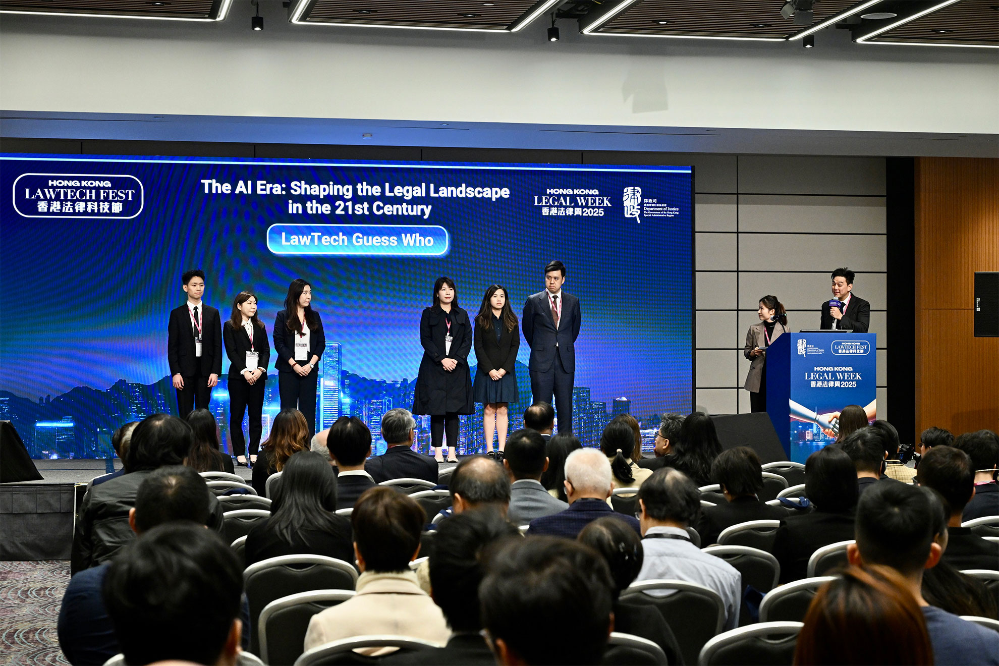 香港法律周2025—法律科技主題論壇「人工智能大時代:塑造21世紀法律新格局」今日(十二月五日)舉行。圖示「法律科技猜猜誰」互動環節。