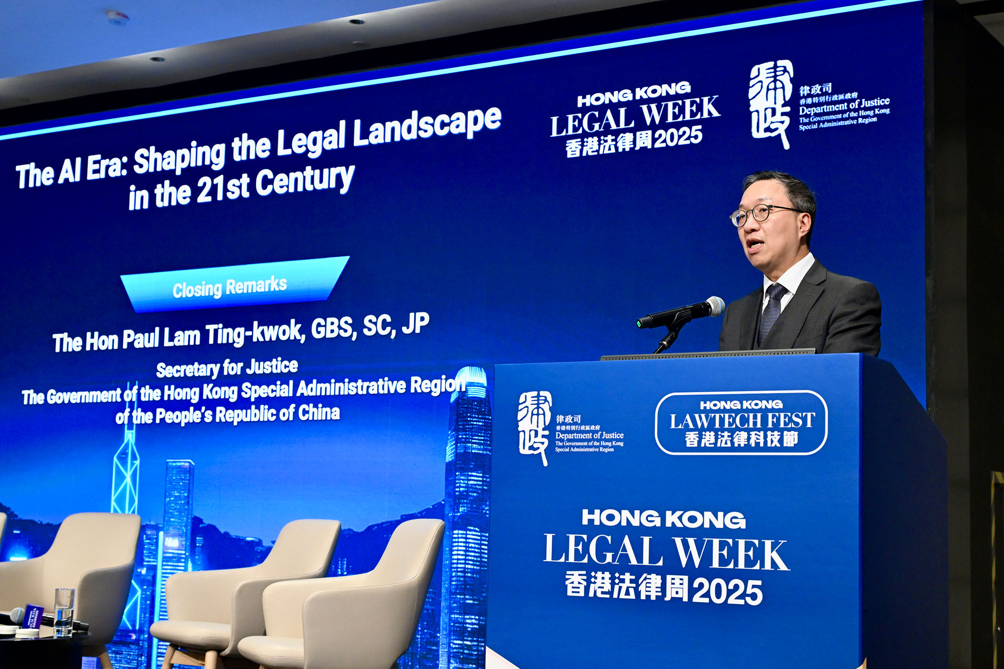 律政司司長林定國資深大律師今日(十二月五日)在香港法律周2025—法律科技主題論壇「人工智能大時代:塑造21世紀法律新格局」上致閉幕辭。