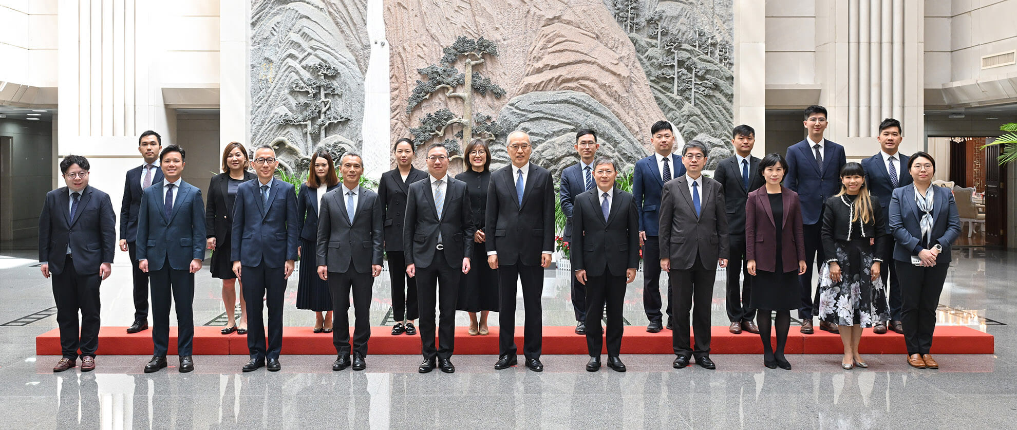 律政司司長林定國資深大律師四月二十日到訪最高人民法院,與最高人民法院院長張軍會面。圖示林定國(前排左五)、張軍(前排中)、最高人民法院副院長茅仲華(前排右五)、國際法律專員丁國榮博士(前排右四)、法律政策專員梅基發(前排左三)、民事法律專員戴思勁(前排左二)和其他與會者在會面前合照。