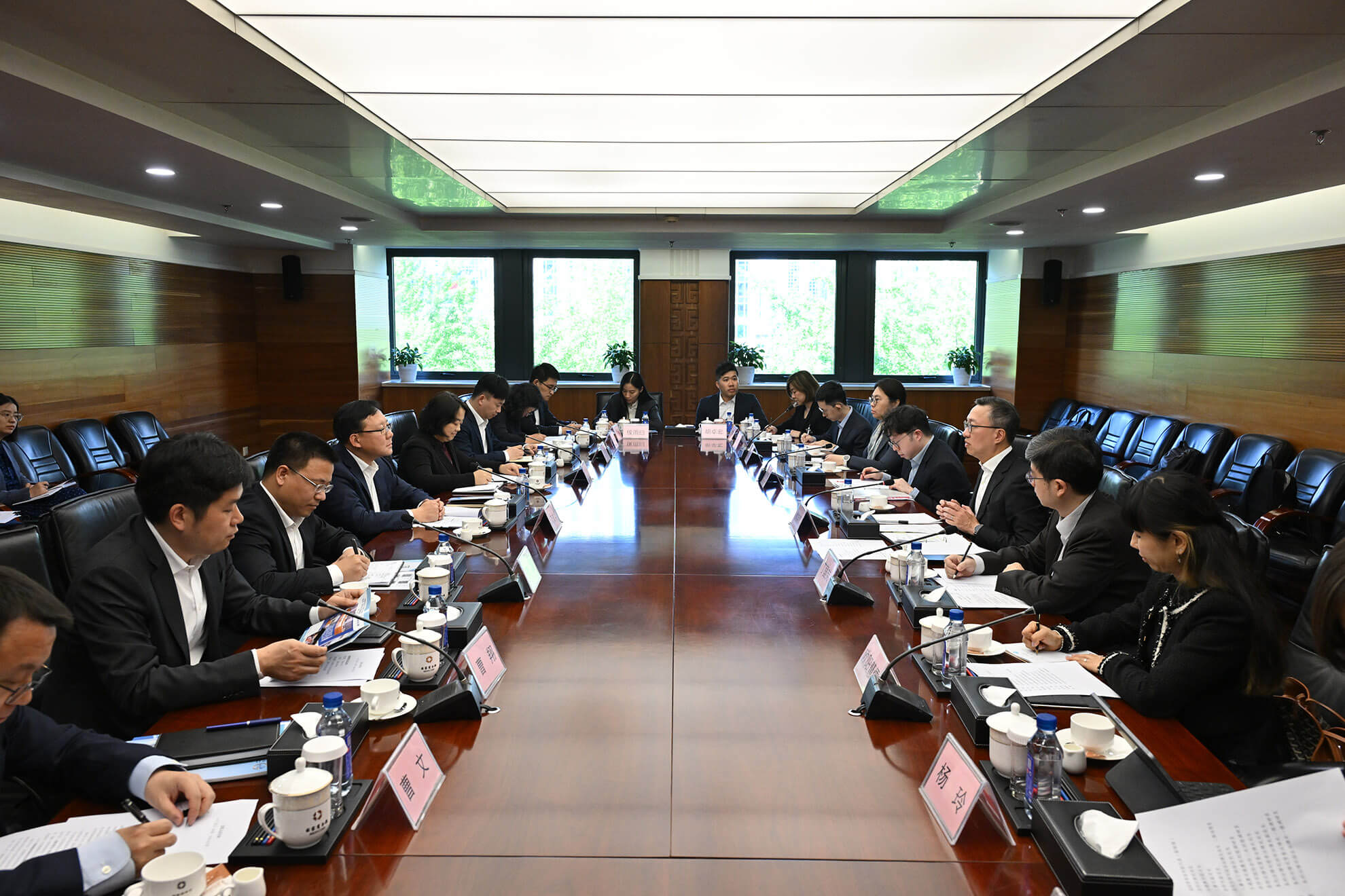 律政司司長林定國資深大律師(右三)四月二十一日與國務院國有資產監督管理委員會官員會面。國際法律專員丁國榮博士(左二)亦有出席。