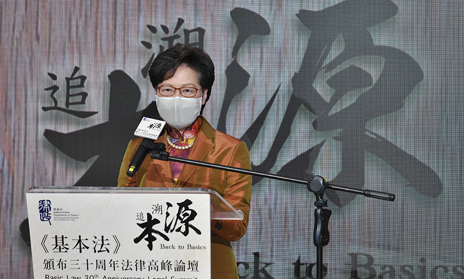 接着我想分享的是,為甚麼我們要用「追本溯源」這個概念?因為我們發覺有很多對《基本法》不完整的了解,有的是忘了《憲法》,有的說《憲法》在香港不適用,有的忘了「一國兩制」的前提就是「一國」的重要性,所以我們決定用「追本溯源」這個原則來主辦這次《基本法》頒布三十周年法律高峰論壇。